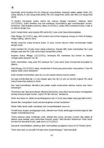 warga Jakarta, R (36) warga Kota Jambi, PIS (19) warga Kota Jambi, dan ARS (15) warga Kota