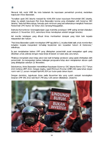 Menurut Adi, revisi UMP ibu kota bukanlah itu keputusan pemerintah provinsi, melainkan