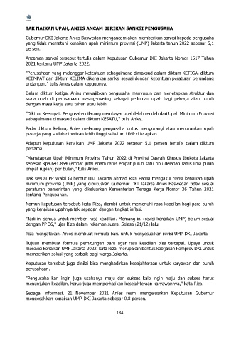 Pada diktum kelima, Anies melarang pengusaha untuk mengurangi atau menurunkan upah