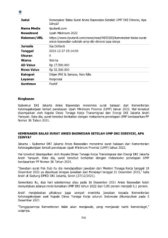 Judul Kemenaker Balas Surat Anies Baswedan Setelah UMP DKI Direvisi, Apa
