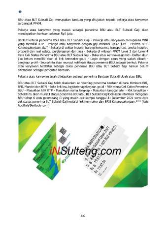 BSU atau BLT Subsidi Gaji merupakan bantuan yang ditujukan kepada pekerja atau karyawan