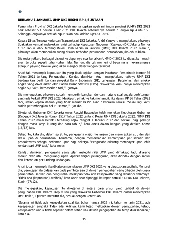 yang ada terkait UMP DKI 2022. Meskipun, pihaknya tak menampik jika dalam PP 36 Tahun 2021