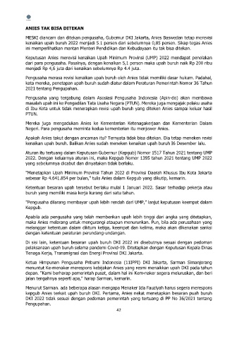 Keputusan Anies merevisi kenaikan Upah Minimum Provinsi (UMP) 2022 mendapat penolakan