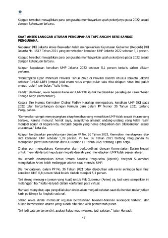 Jakarta No. 1517 Tahun 2021 yang menetapkan kenaikan UMP Jakarta 2022 sebesar 5,1 persen.