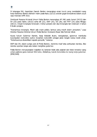 Di tetangga DKI, Kepolisian Daerah Banten menangkap enam buruh yang menduduki ruang