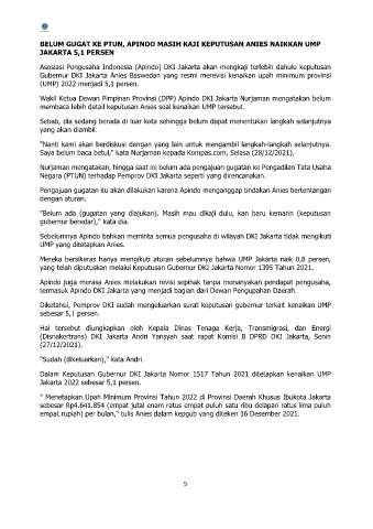 BELUM GUGAT KE PTUN, APINDO MASIH KAJI KEPUTUSAN ANIES NAIKKAN UMP