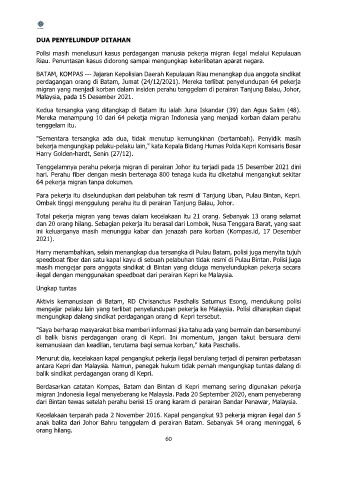 perdagangan orang di Batam, Jumat (24/12/2021). Mereka terlibat penyelundupan 64 pekerja
