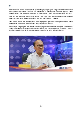 Menurutnya, penghargaan dan disiplin terhadap pegawai telah diberlakukan pada PP Nomor 30
