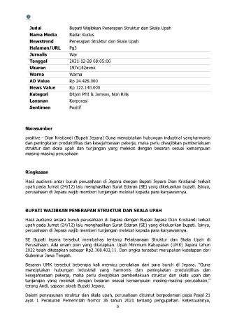 Judul Bupati Wajibkan Penerapan Struktur dan Skala Upah