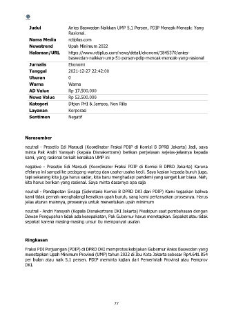 neutral - Andri Yansyah (Kepala Disnakertrans DKI Jakarta) Meskipun saat pembahasan dengan