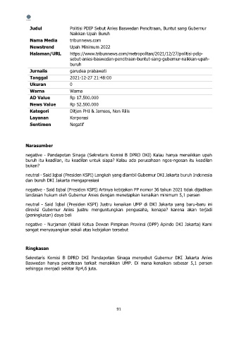 negative - Pandapotan Sinaga (Sekretaris Komisi B DPRD DKI) Kalau hanya menaikkan upah