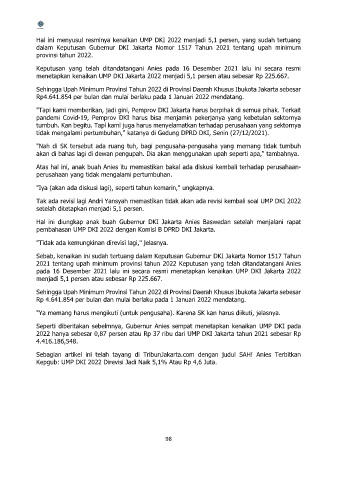 Seperti diberitakan sebelmnya, Gubernur Anies sempat menetapkan kenaikan UMP DKI pada