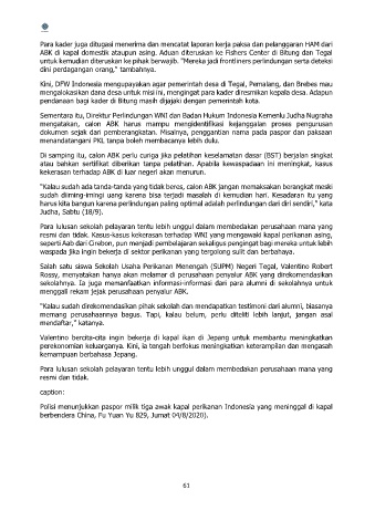 ABK di kapal domestik ataupun asing. Aduan diteruskan ke Fishers Center di Bitung dan Tegal