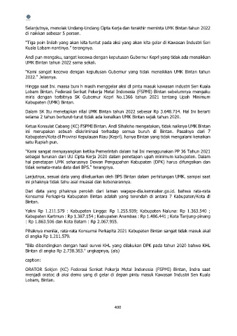 Selanjutnya, menolak Undang-Undang Cipta Kerja dan terakhir meminta UMK Bintan tahun 2022