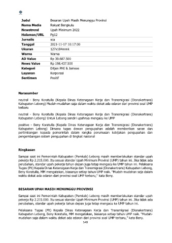 Kabupaten Lebong) Mudah-mudahan saja dalam waktu dekat ada edaran dari provinsi soal UMP