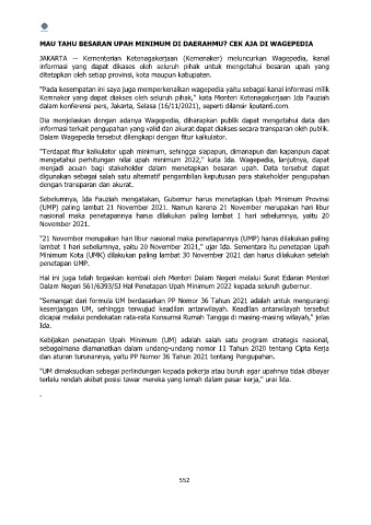 lambat 1 hari sebelumnya, yaitu 20 November 2021," ujar Ida. Sementara itu penetapan Upah