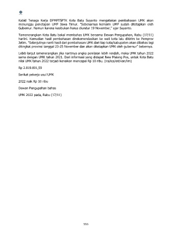 sama dengan UMK tahun 2021. Dari informasi yang didapat New Malang Pos, untuk Kota Batu