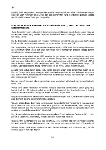 (16/11). Said mengatakan, terdapat dua agenda yang disoroti oleh KSPI. Yaitu terkait dengan