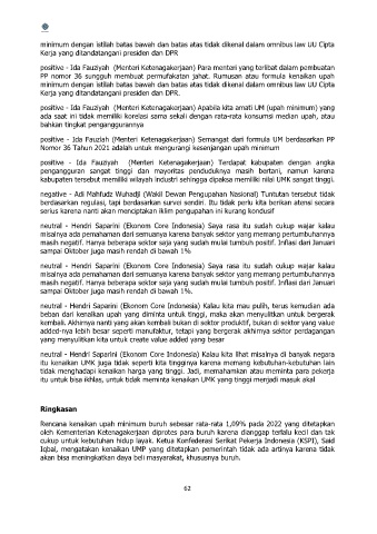 positive - Ida Fauziyah (Menteri Ketenagakerjaan) Apabila kita amati UM (upah minimum) yang