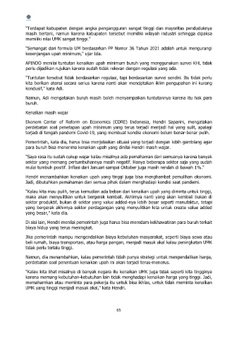 Hendri menambahkan kenaikan upah yang tinggi juga bisa menghambat pemulihan ekonomi.