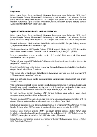 IQBAL: KENAIKAN UMP BABEL 2022 MASIH WAJAR