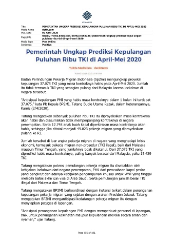 kepulangan 37.075 TKI yang masa kontraknya habis pada April-Mei 2020. Jumlah