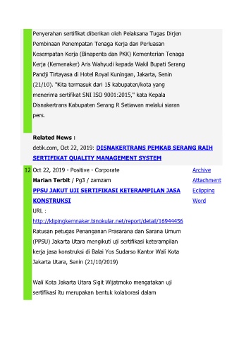 detik.com, Oct 22, 2019: DISNAKERTRANS PEMKAB SERANG RAIH
