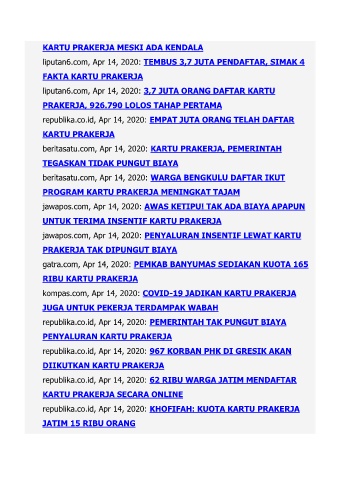 kompas.com, Apr 14, 2020: COVID-19 JADIKAN KARTU PRAKERJA