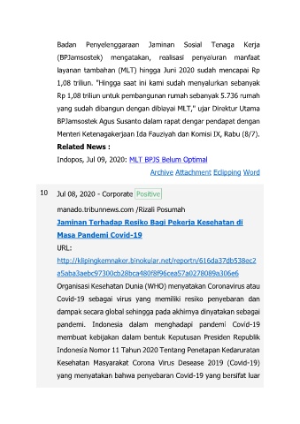 Indopos, Jul 09, 2020: MLT BPJS Belum Optimal