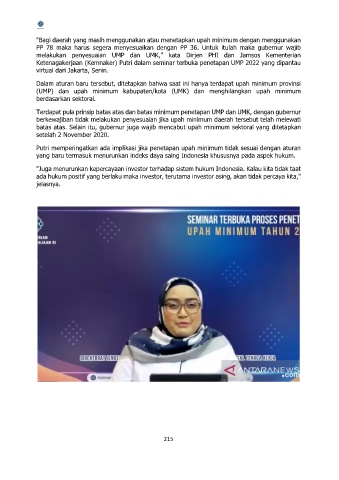Ketenagakerjaan (Kemnaker) Putri dalam seminar terbuka penetapan UMP 2022 yang dipantau