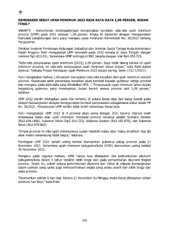 minimum provinsi, ini rata-rata penyesuaian upah minimum tahun depan," kata Putri dalam