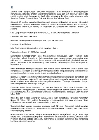 minimum 2022 dalam waktu dekat. Penentuan upah minimum provinsi paling lambat diumumkan