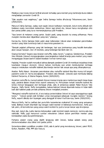 heran." "Jokowi seolah-olah tertekan untuk mengadopsi sebanyak mungkin menteri," terang
