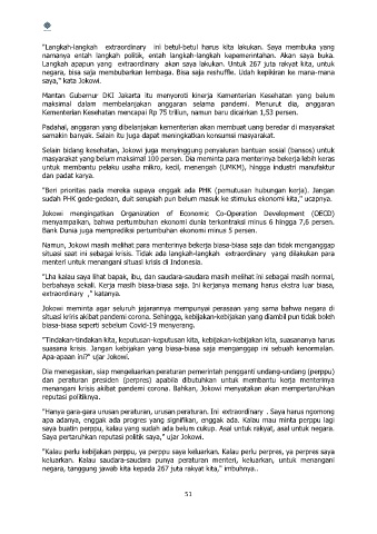 Langkah apapun yang extraordinary akan saya lakukan. Untuk 267 juta rakyat kita, untuk