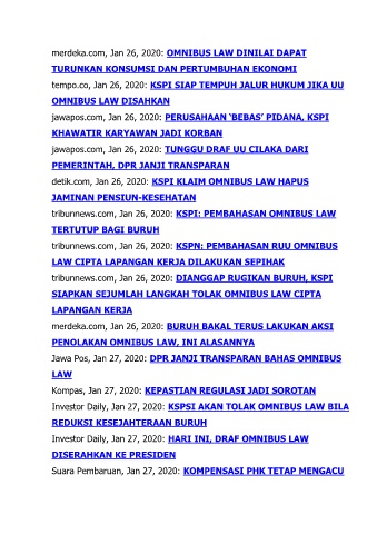 tribunnews.com, Jan 26, 2020: KSPI: PEMBAHASAN OMNIBUS LAW