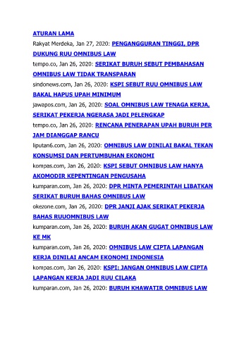 kumparan.com, Jan 26, 2020: BURUH AKAN GUGAT OMNIBUS LAW
