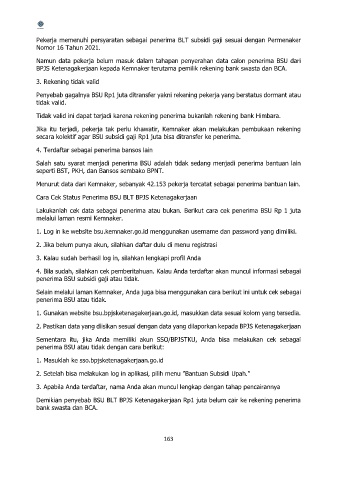 Pekerja memenuhi persyaratan sebagai penerima BLT subsidi gaji sesuai dengan Permenaker