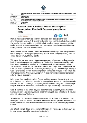 Title PASCA CORONA, PELAKU USAHA DIHARAPKAN PEKERJAKAN KEMBALI PEGAWAI YANG KENA