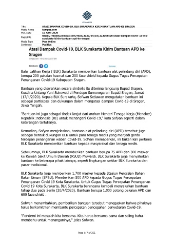 Title ATASI DAMPAK COVID-19, BLK SURAKARTA KIRIM BANTUAN APD KE SRAGEN