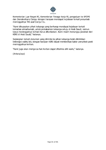 meninggalnya TKI asal Cianjur itu.