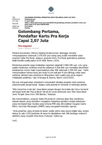 Title GELOMBANG PERTAMA, PENDAFTAR KARTU PRA KERJA CAPAI 2,07 JUTA
