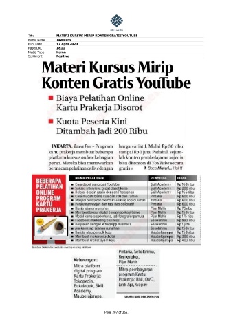 Title MATERI KURSUS MIRIP KONTEN GRATIS YOUTUBE Media Name Jawa Pos Pub. Date 17 April 2020 Page/URL 1&11 Media Type Koran Sentiment Positive Page 207 of 355.