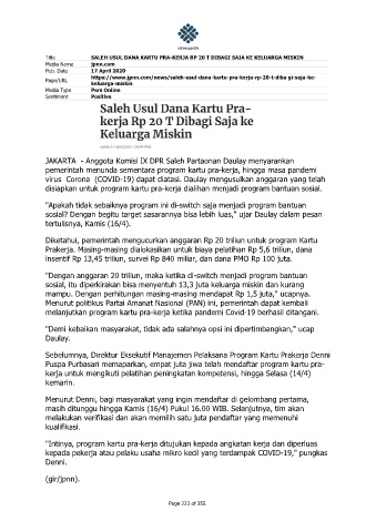 Title SALEH USUL DANA KARTU PRA-KERJA RP 20 T DIBAGI SAJA KE KELUARGA MISKIN
