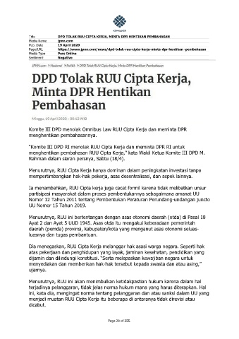 Title DPD TOLAK RUU CIPTA KERJA, MINTA DPR HENTIKAN PEMBAHASAN