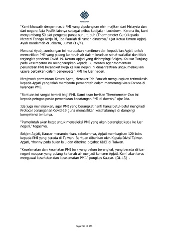 kepada PMI yang berada di Taiwan. Bantuan diberikan oleh Kepala Divisi Taiwan
