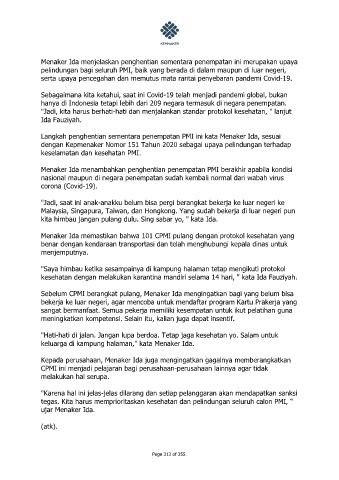 Menaker Ida menambahkan penghentian penempatan PMI berakhir apabila kondisi