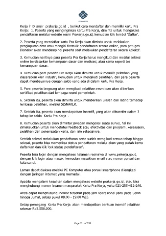 Kerja: 1. Peserta yang menginginkan kartu Pra Kerja, diminta untuk mengakses