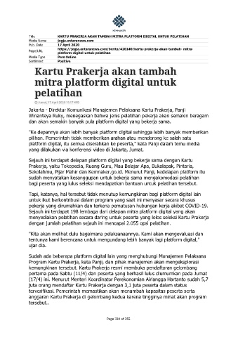 Title KARTU PRAKERJA AKAN TAMBAH MITRA PLATFORM DIGITAL UNTUK PELATIHAN