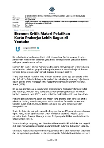 Title EKONOM KRITIK MATERI PELATIHAN KARTU PRAKERJA: LEBIH BAGUS DI YOUTUBE