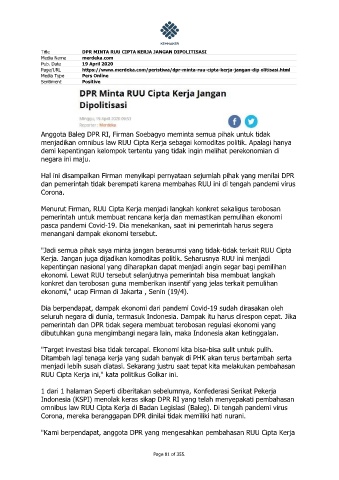 Page/URL https://www.merdeka.com/peristiwa/dpr-minta-ruu-cipta-kerja-jangan-dip olitisasi.html